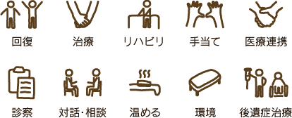 野口接骨院は一次医療圏を基盤として総社町に在住の方限定ですが 24時間体制で電話の受付をし怪我の応急処置をおこなってきました。 また地域を支える活動として一人暮らしの高齢者のご自宅に訪問し健康相談などのボランティアを行なっています。